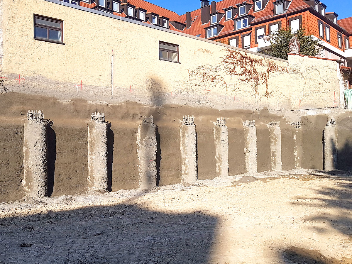 - Ausspritzen von tangierenden Bohrpfahlwänden